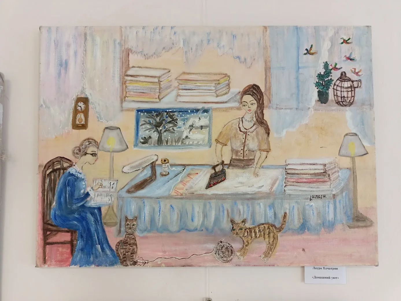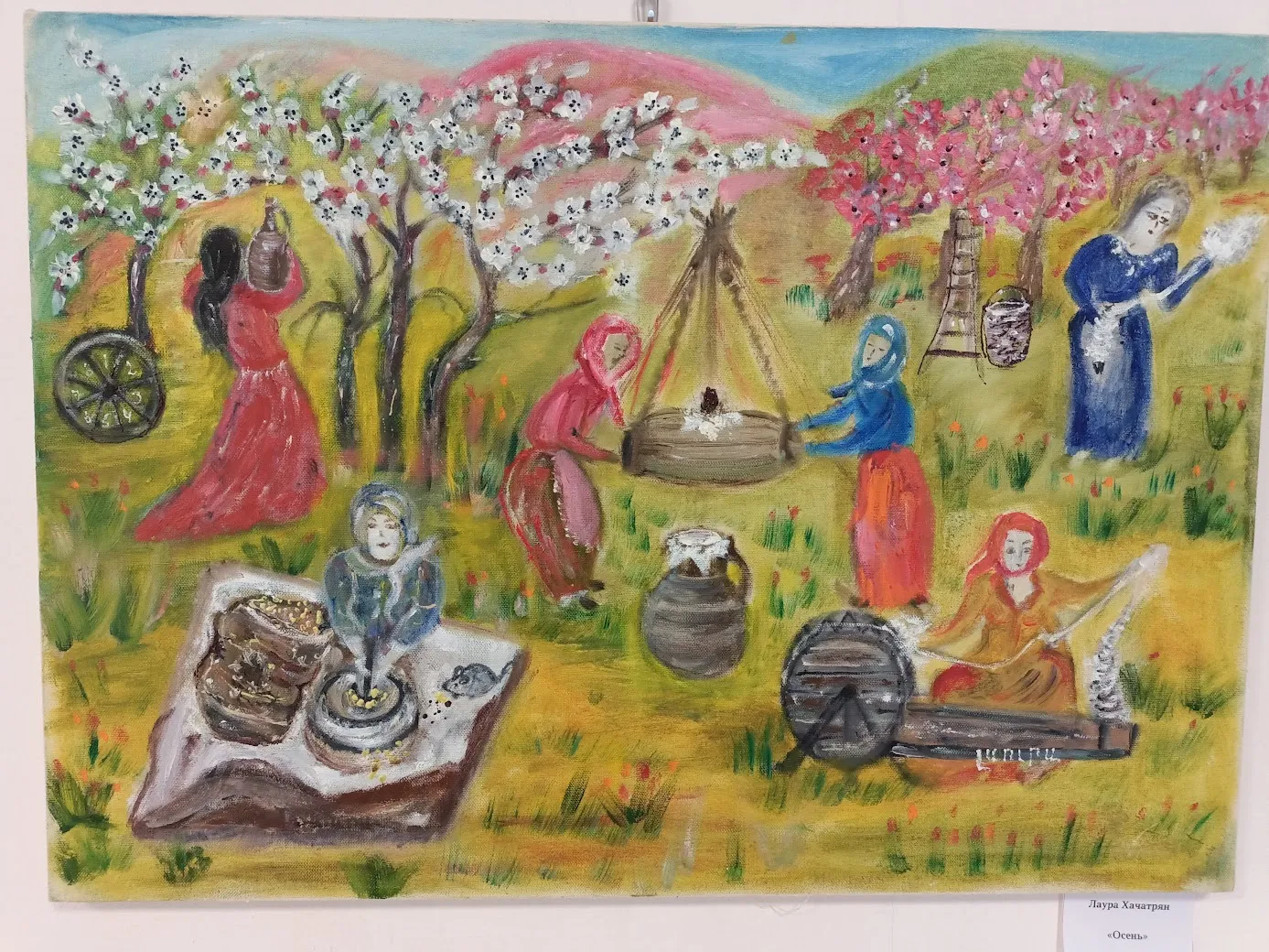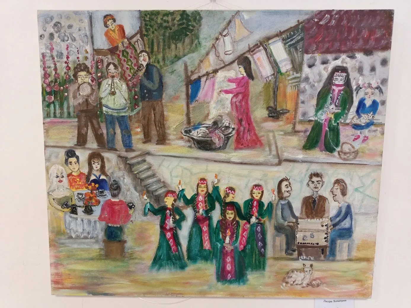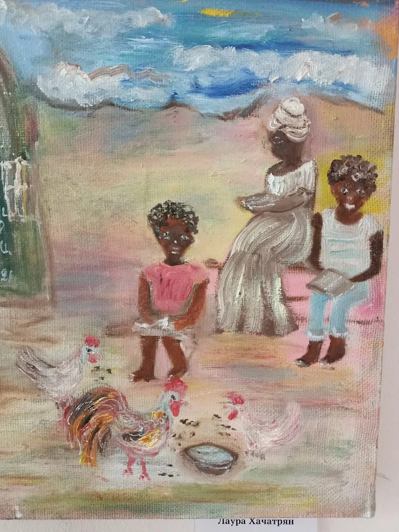 Лаура Хачатрян родилась в Армении, но в 1992 вынуждена была уехать со своей родины. Рисовать начала уже здесь, в Саратове. Она самоучка, работает в жанре наивного искусства. Для которого требуется не столько техника, сколько выразительность и эмоциональность, а этого у неё в работах через край.