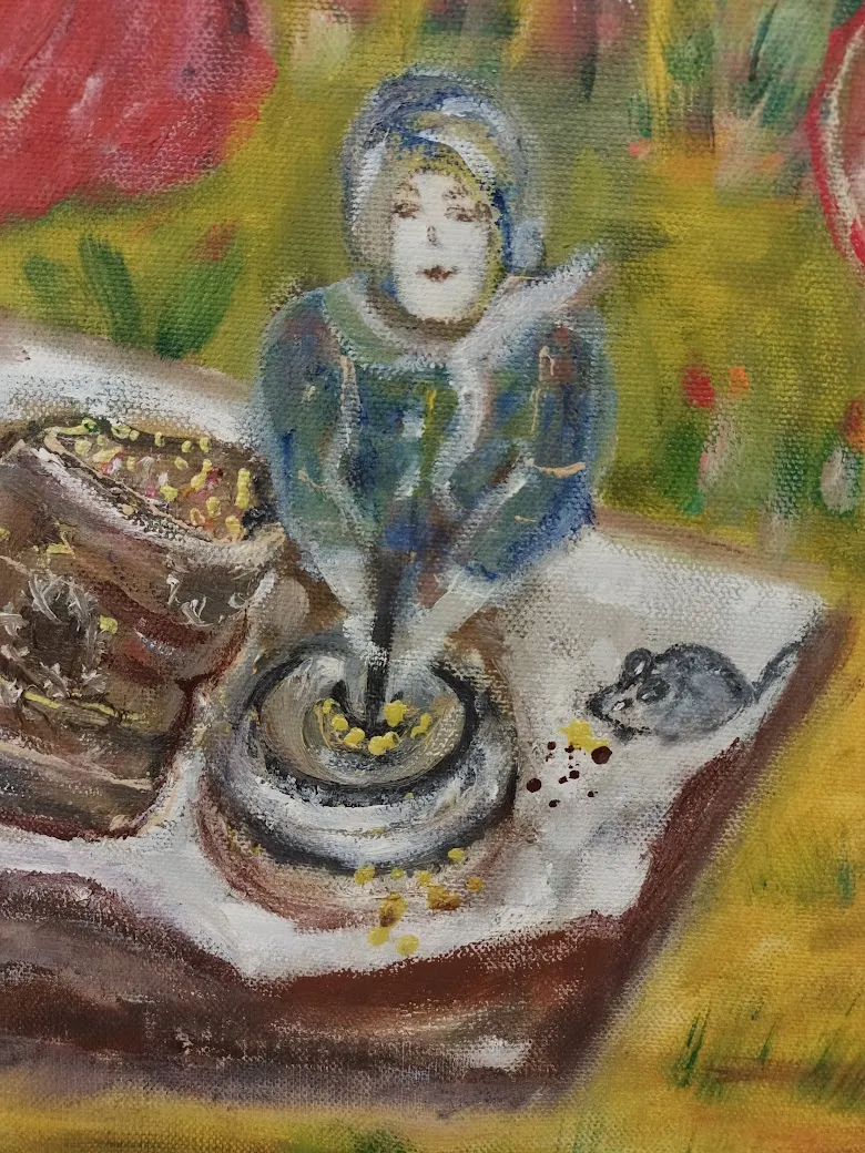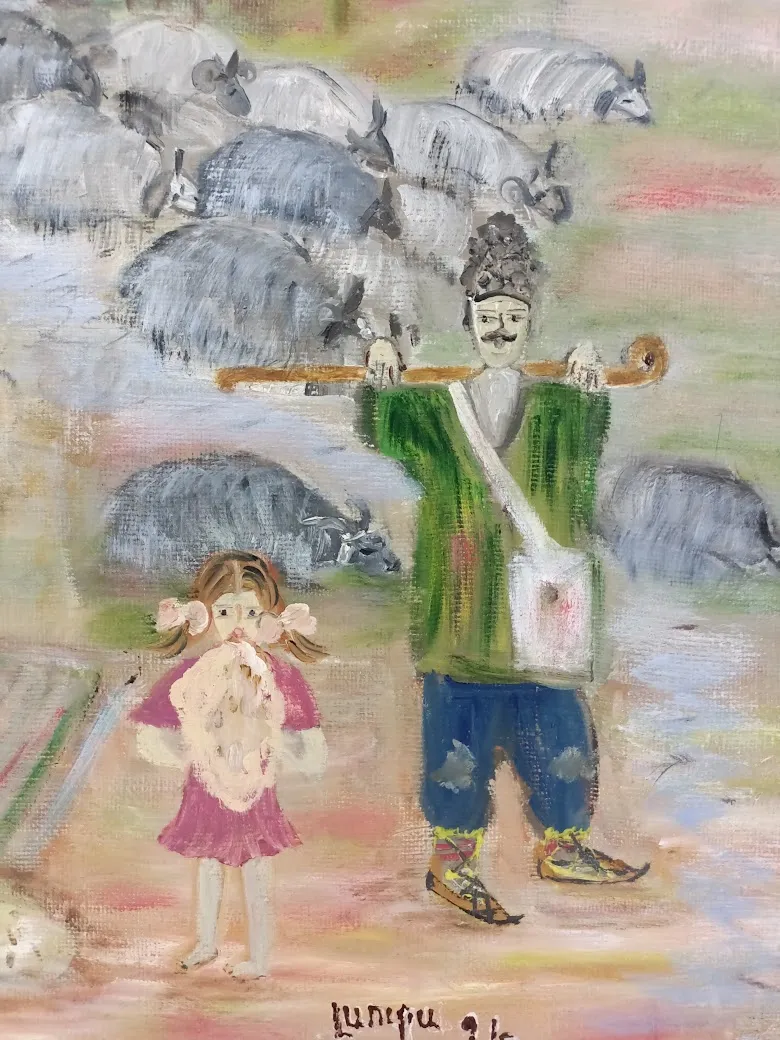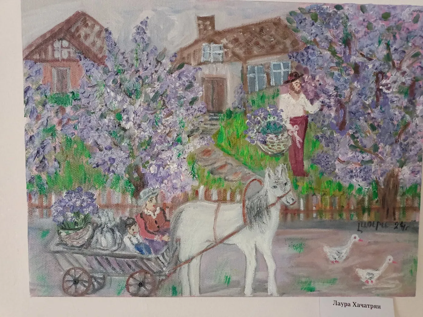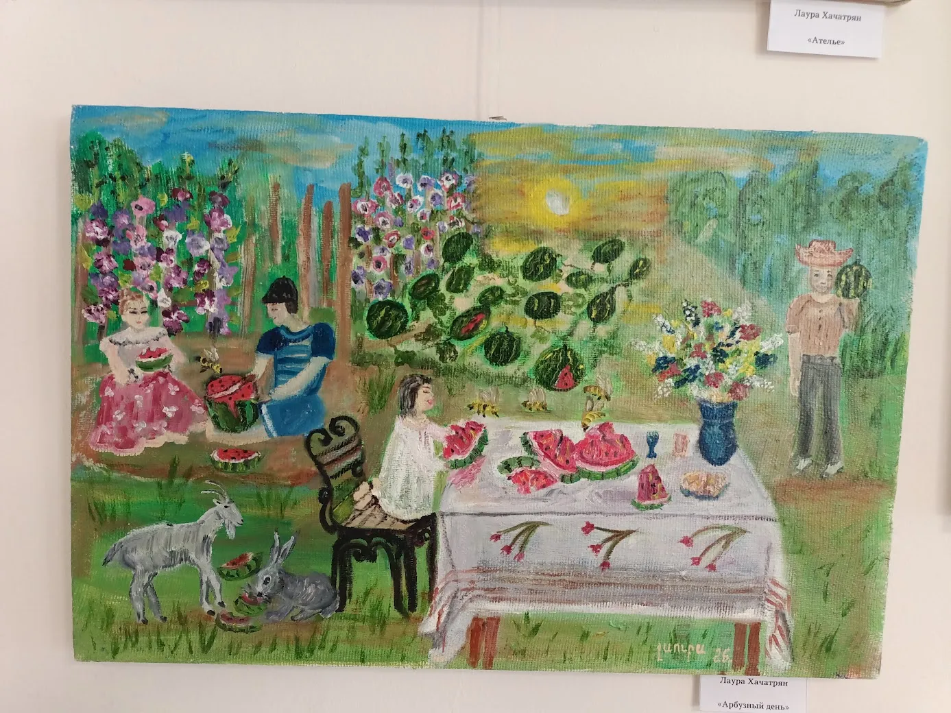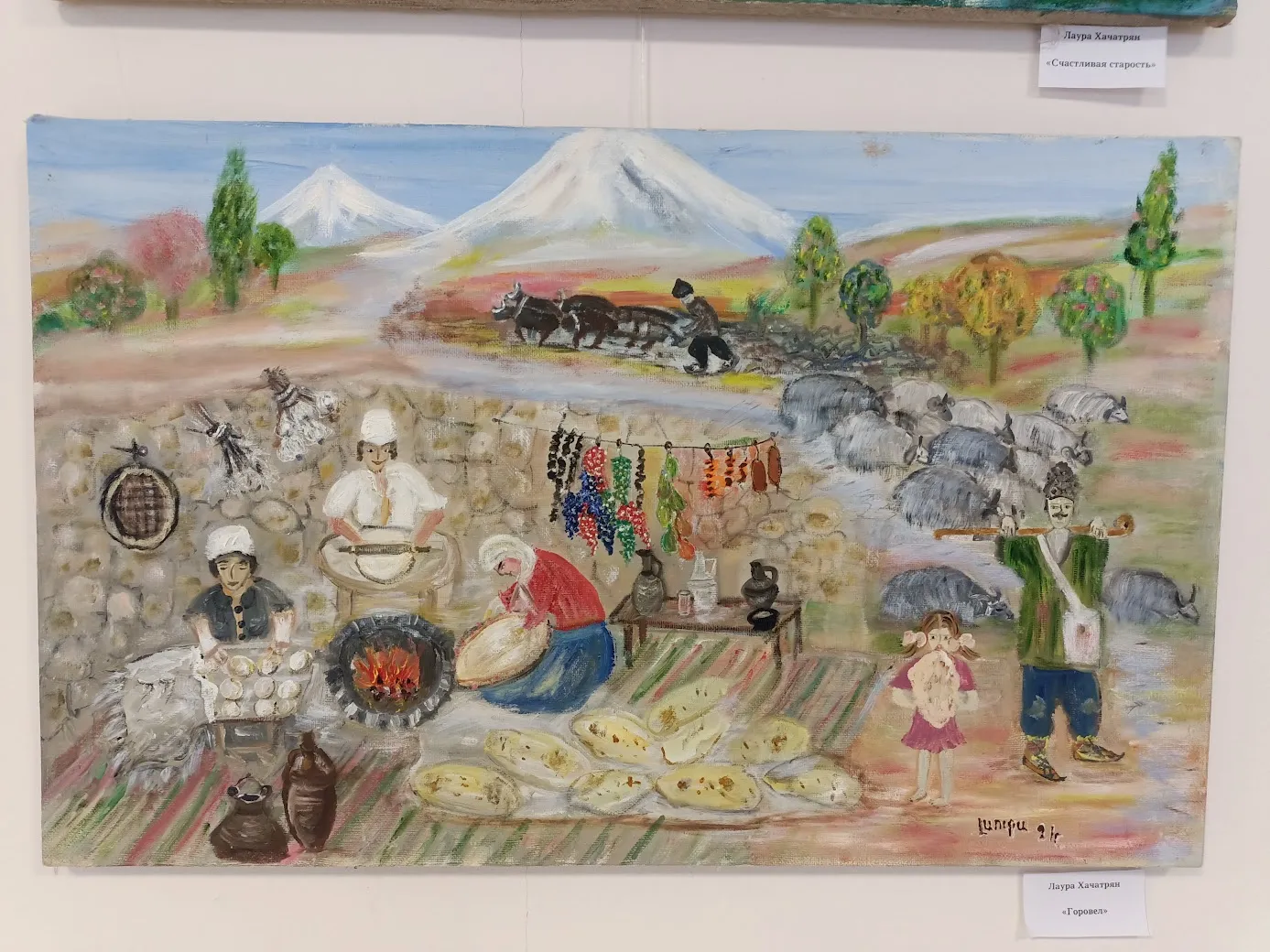 Лаура Хачатрян родилась в Армении, но в 1992 вынуждена была уехать со своей родины. Рисовать начала уже здесь, в Саратове. Она самоучка, работает в жанре наивного искусства. Для которого требуется не столько техника, сколько выразительность и эмоциональность, а этого у неё в работах через край.