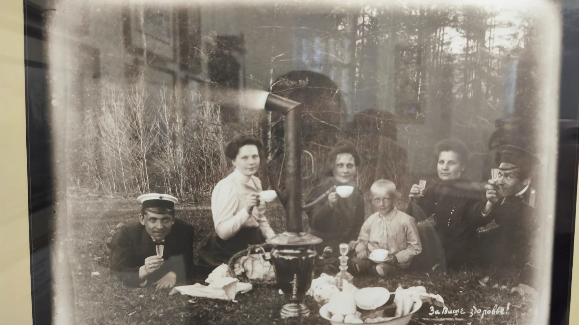 Чаепитие. Люди улыбаются, расслаблены. Невероятно для фотографий той эпохи.
