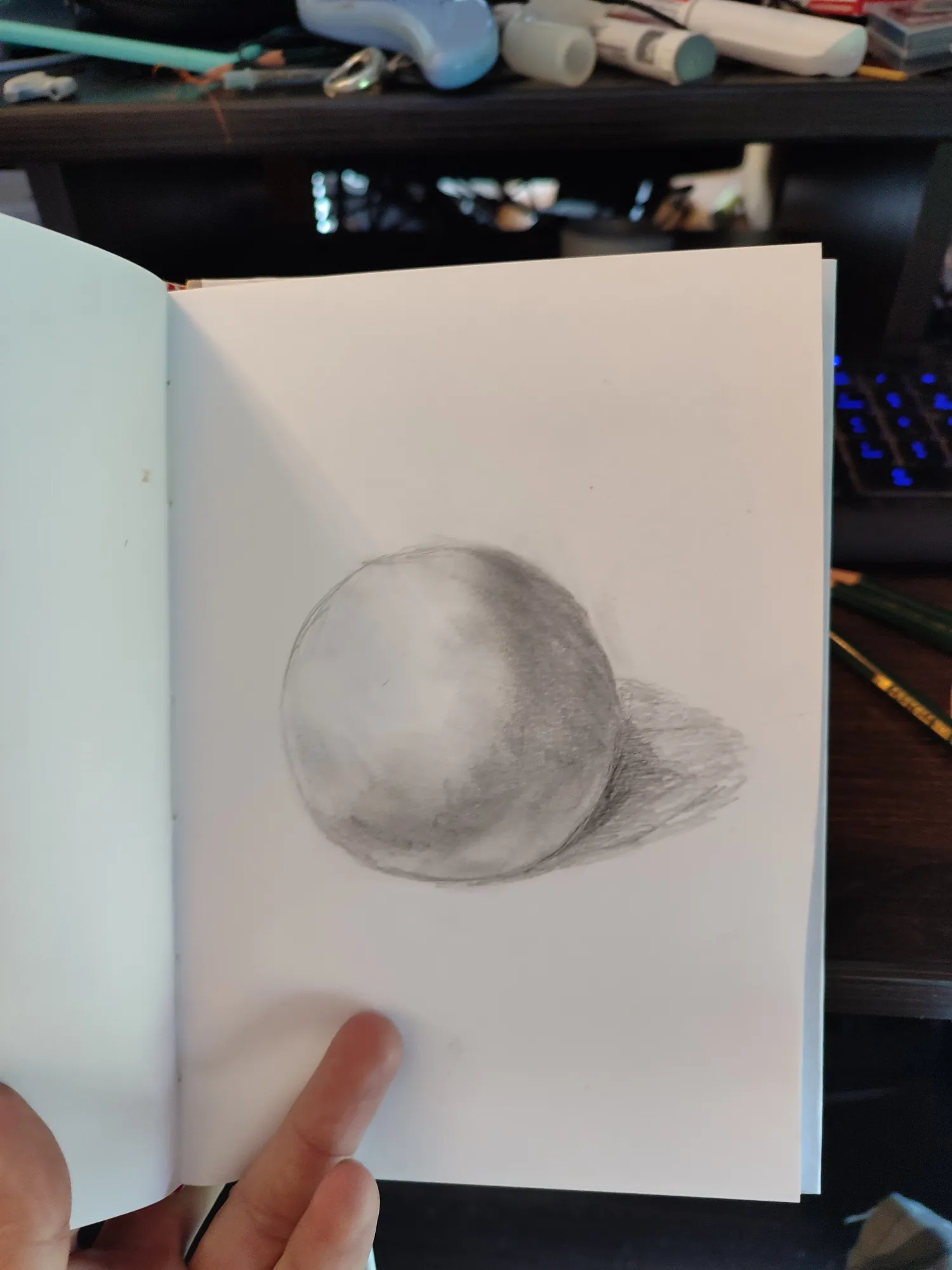 Если же говорить о традиционной живописи, то обводка, скорее всего, была бы карандашом и он уже или остался под слоем краски или его можно подстирать по мере необходимости, чтоб не торчал. Но моей задачей в этом уроке было показать форму. Надеюсь, я справился...