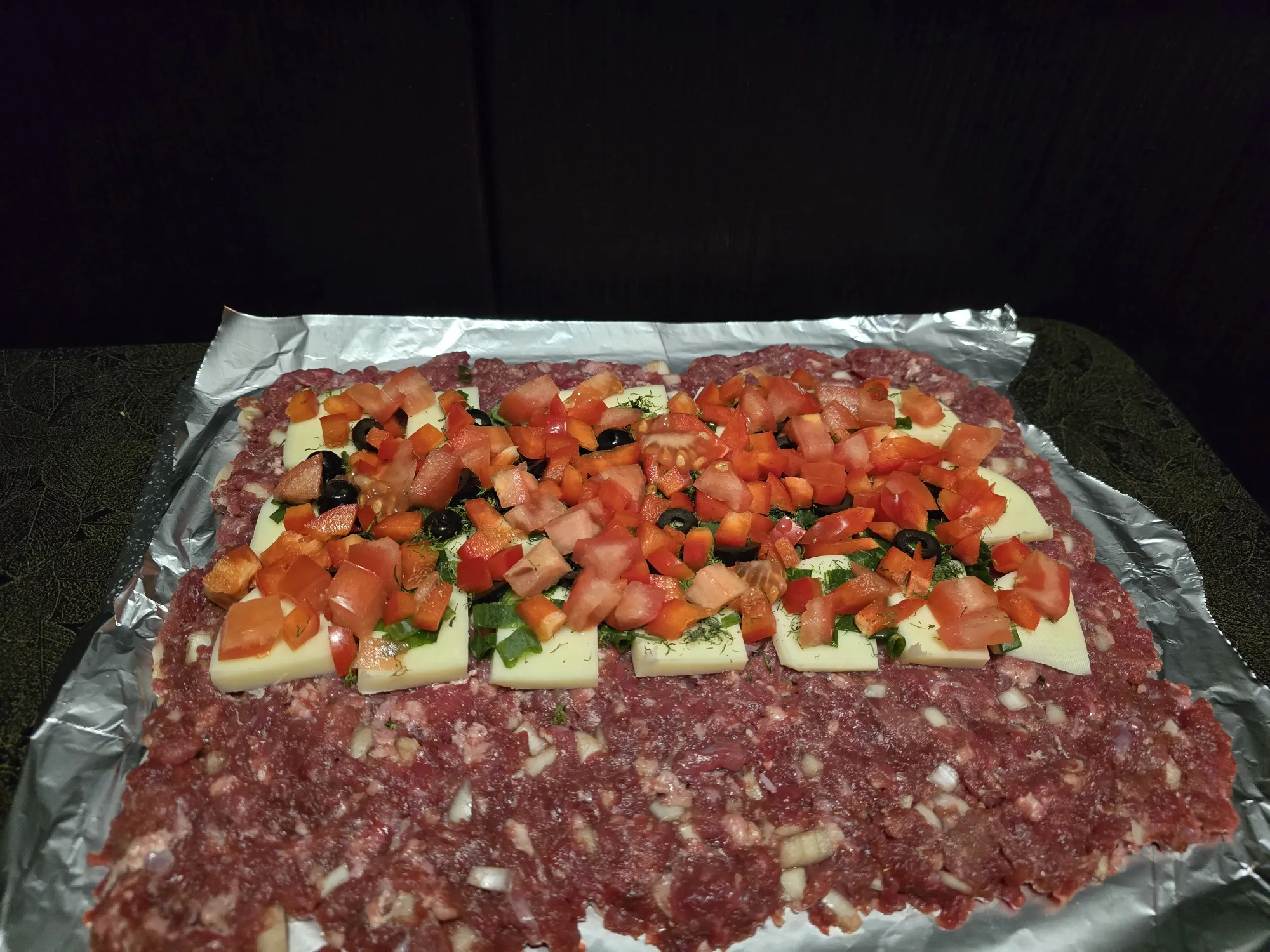 Начинка из поста (моцарелла, помидорки и зелёный лук) мне понравилась, муж ещё предложил перец болгарский добавить, а я к ним сыпанула укропа и оливок, которые не доела (@Linda_M привет:D)