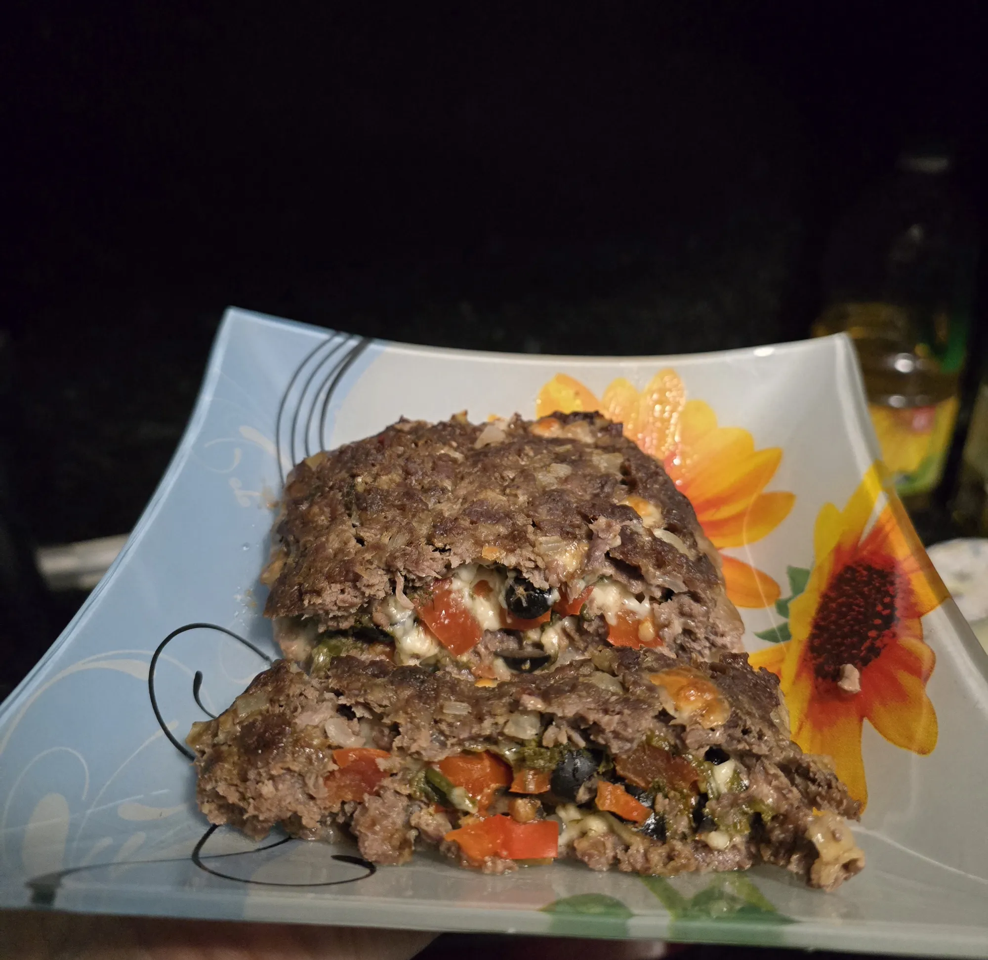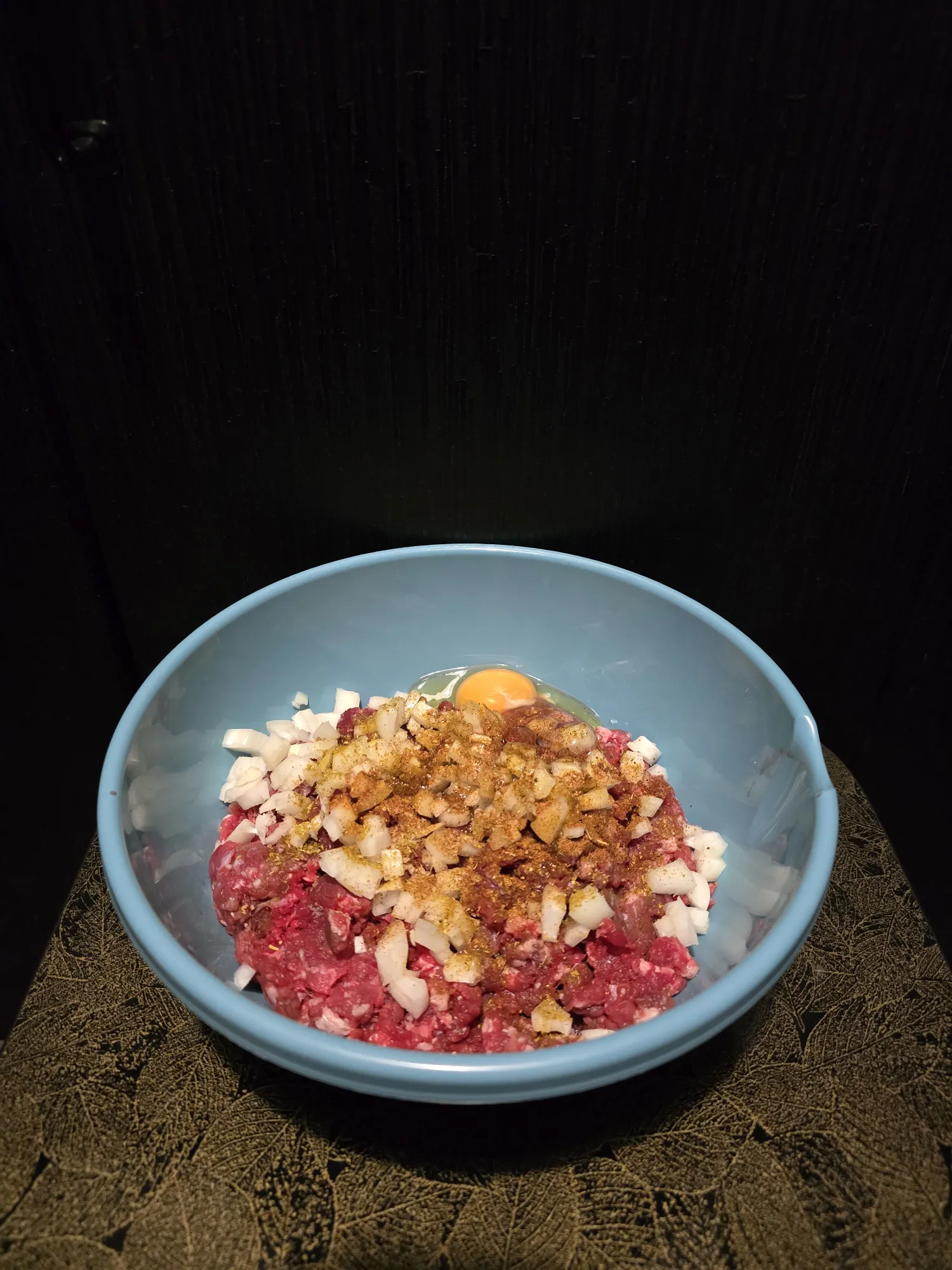 Делала почти так же, но фарш ничем не разбавляла: мясо, лук, специи и яйцо.