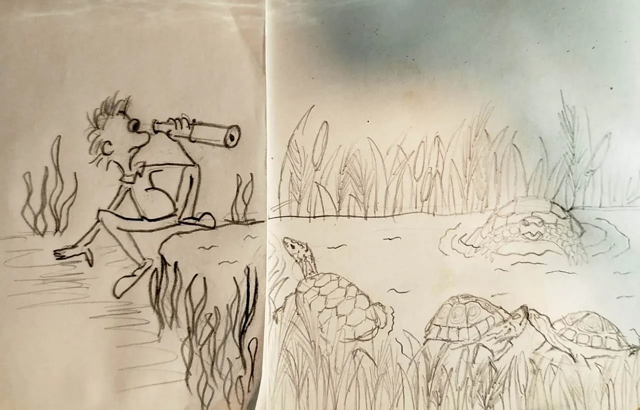 Продолжаю серию портретов великого и ужасного (который тень отца Гамлета). Сегодня мне рисовать помогали. Так как нарисовать черепаху для меня непосильная задача, их рисовала не я (картинка справа). Но портрет конкретно персонажа я никому доверить не могу (картинка слева).