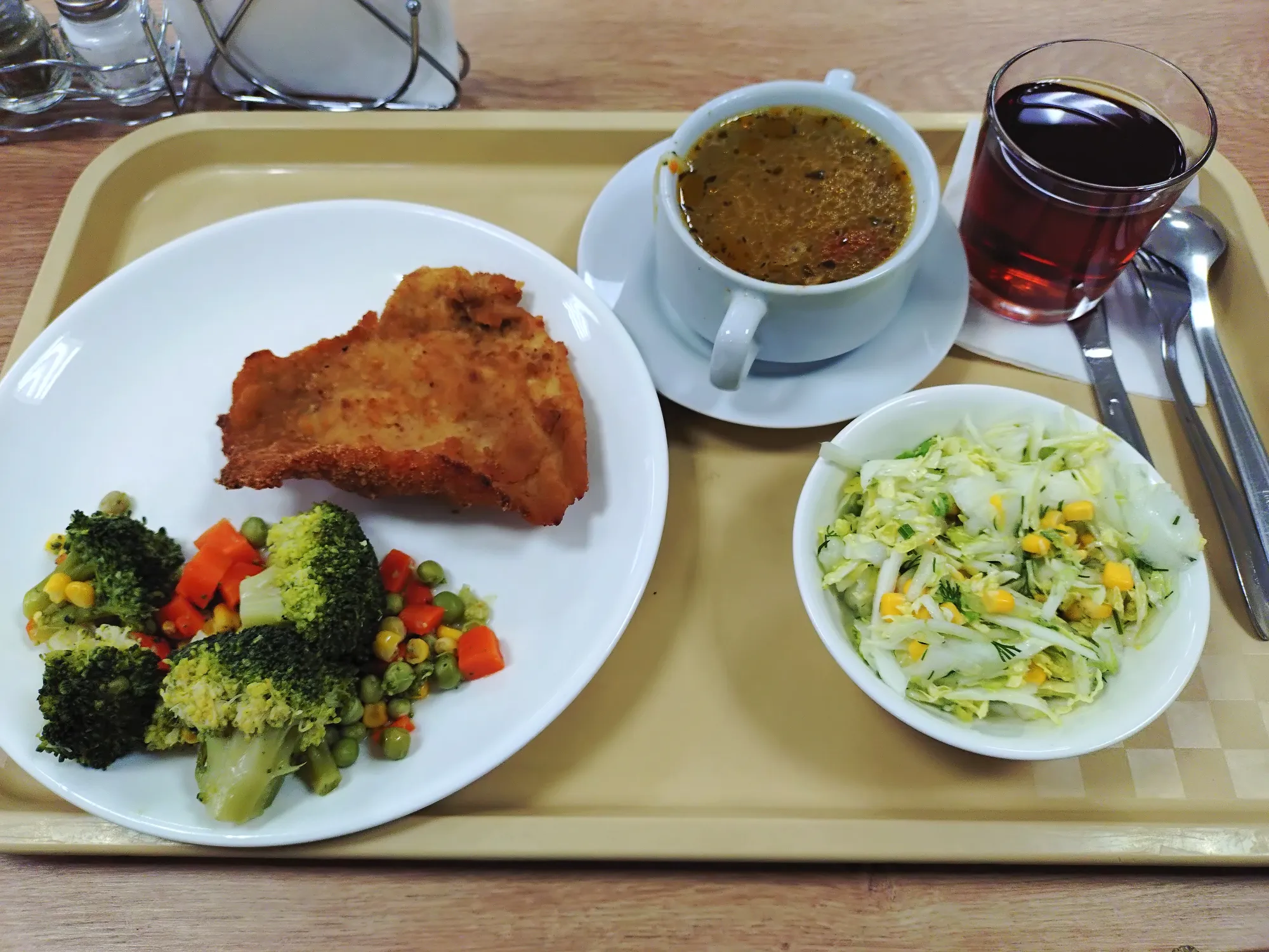 Пока подымается тесто, завершу неделю кушаний фотографией сегодняшнего обеда. Вчера столовая не работала, тем приятнее сегодня было туда сходить, несмотря на погоду