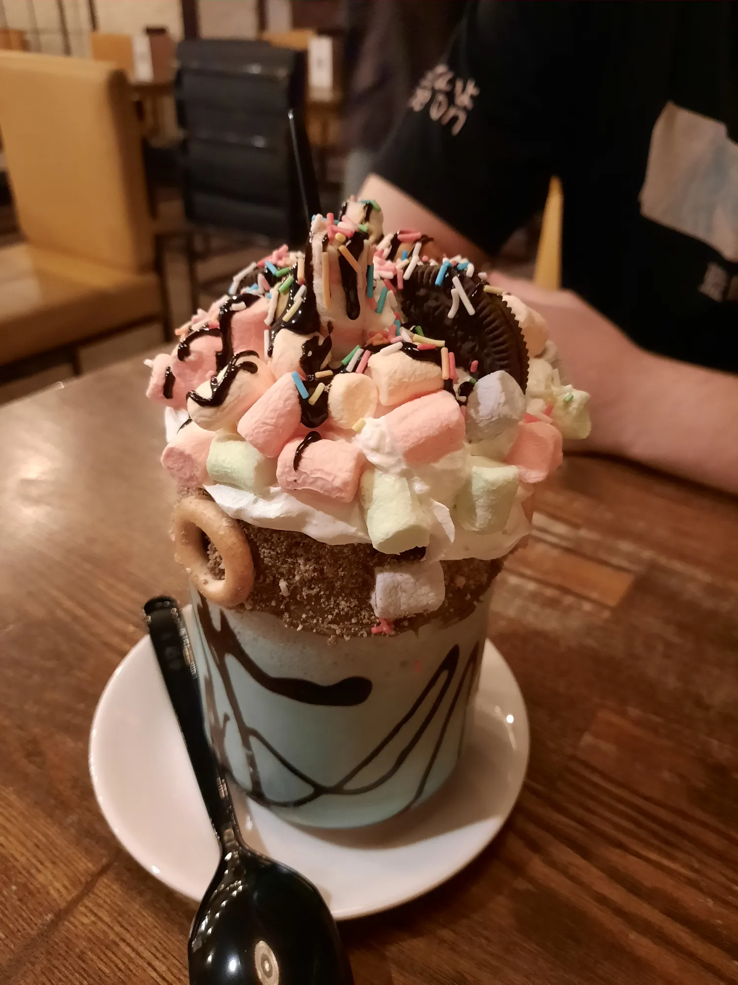 Тут всё коротко. Долго ждали заказ, хотя и посадка была небольшая, и в целом блюд заказали немного... В чико это было, кстати (@Aid314@vervolph привет:D). Ну и сказали, что при следующем визите подарят любой десерт, который выберем. Потом потащились туда с сестрёнкой, она там выбрала трясущегося в конвульсиях съедобного желейного кота: