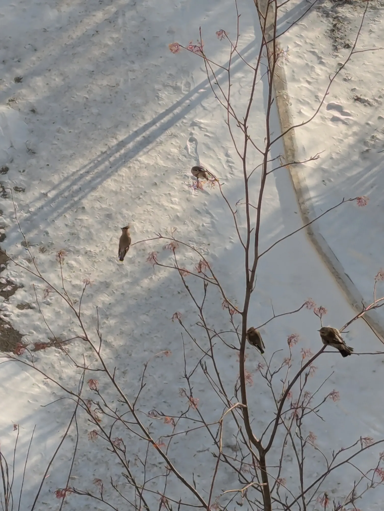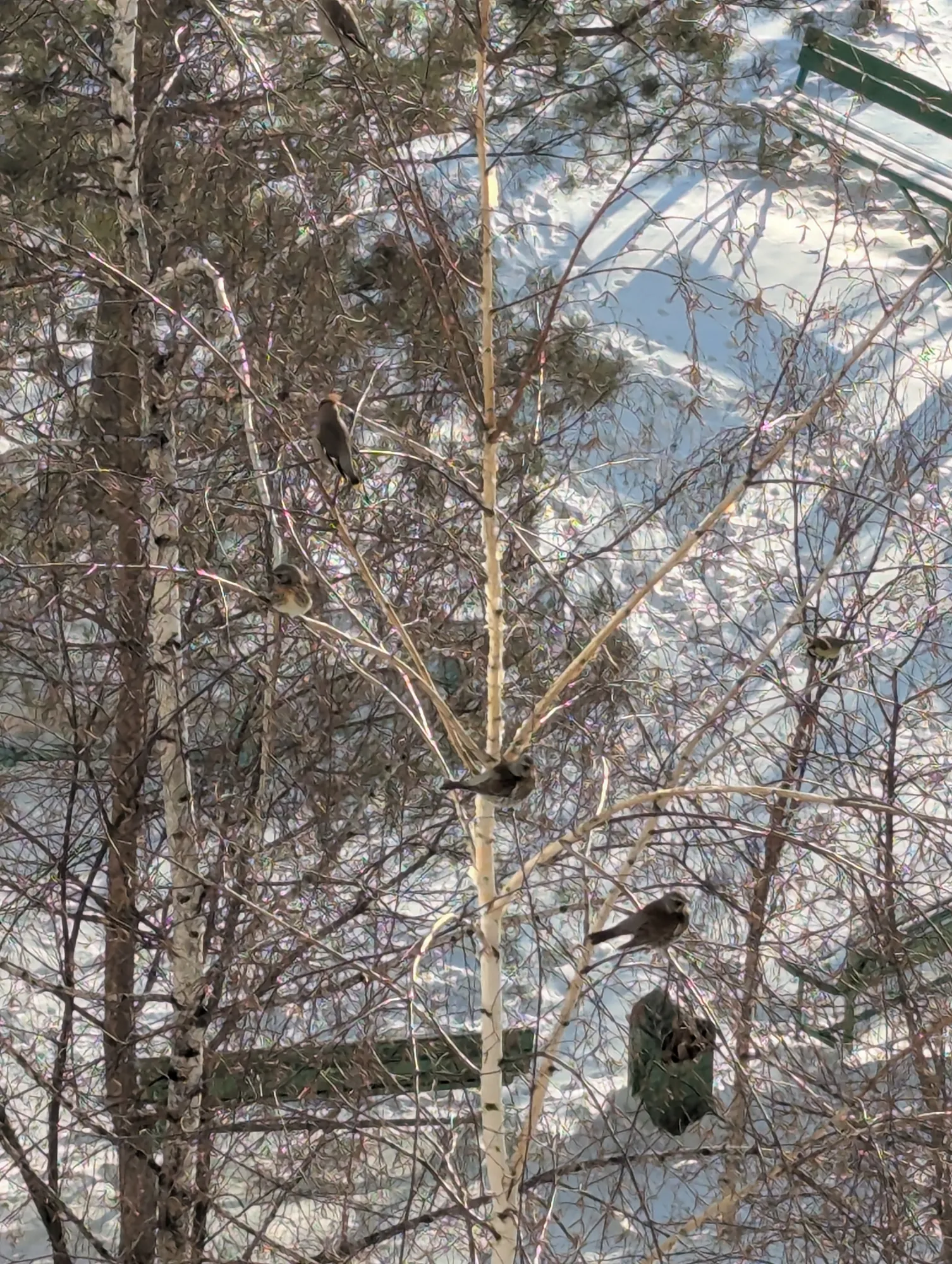 Ну и раз уж у меня это не полноценный пост-рецепт, покажу ещё утреннего: свиристели прилетели. Им никто, видимо, не рассказал, что на днях обещают под -40.