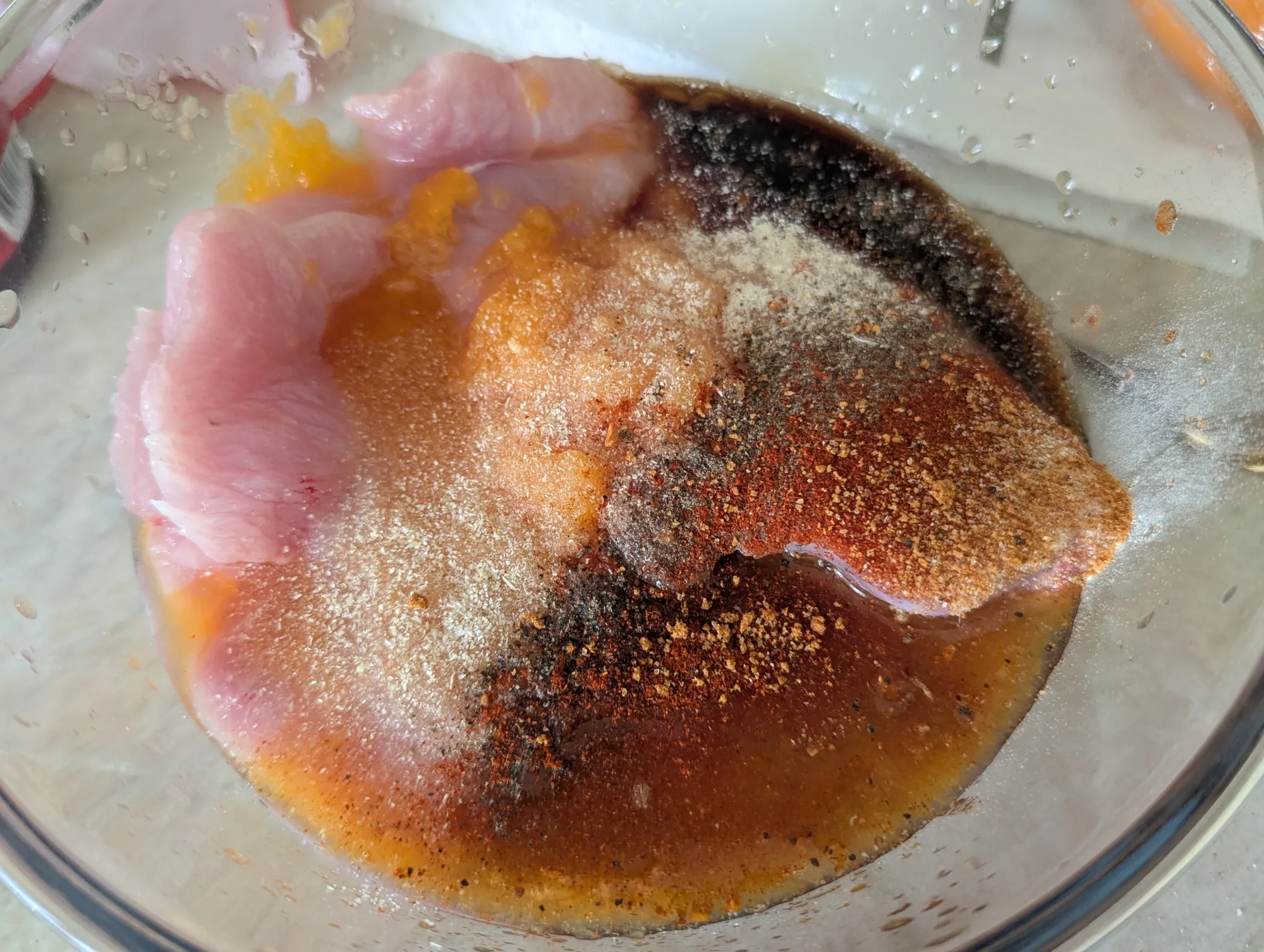 Добавила цедру мандаринки и так как придерживаюсь принципов безотходного производства, сами дольки подавила в индейку – вечером пожарю)) Вкус мандаринов люблю, текстуру – нет.