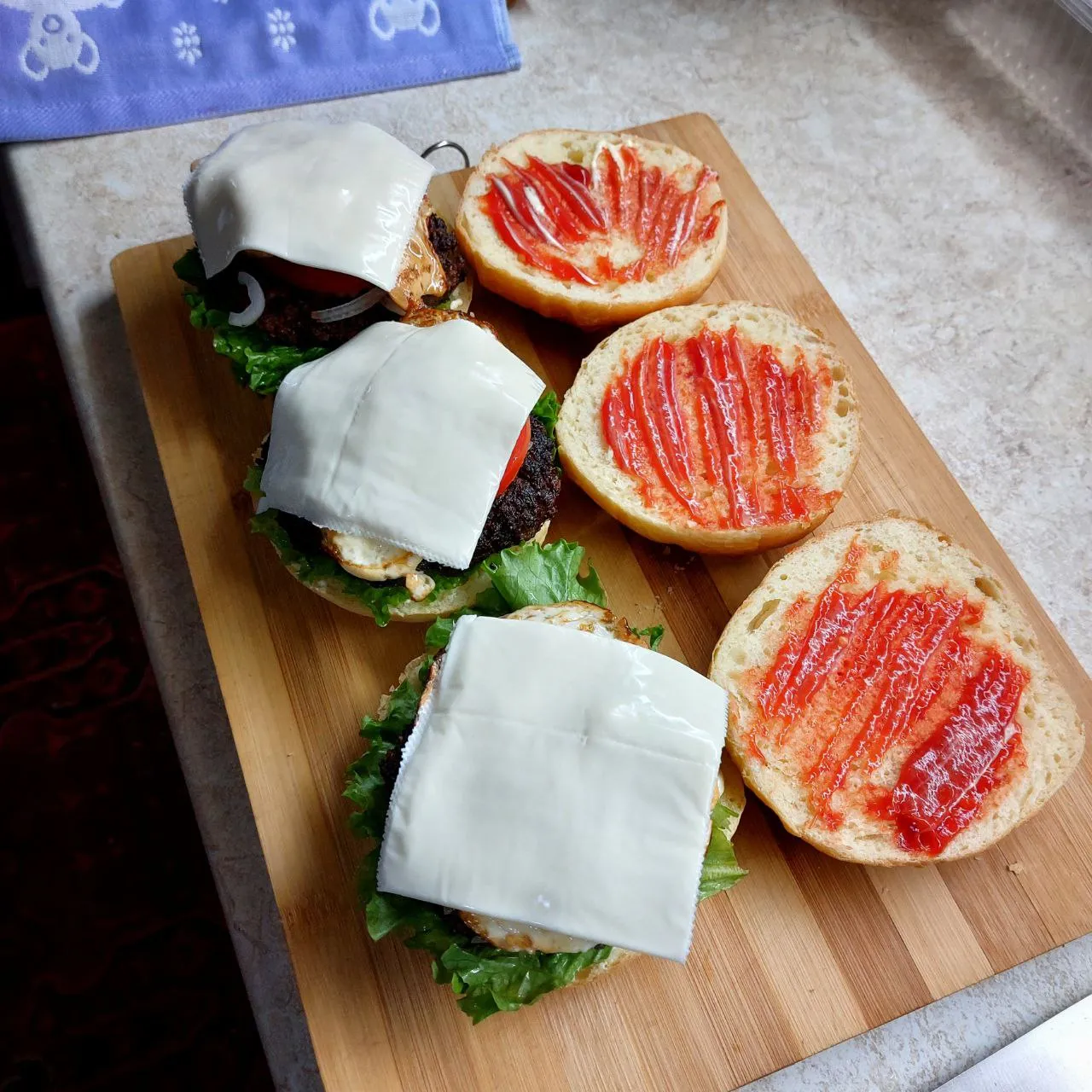 Буквально несколько минут готовки на режиме "котлетка для бургеров" (гриль автоматический, сам сообщает, когда готово)