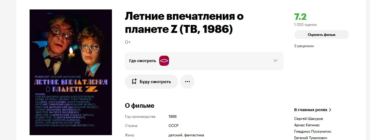 Фильма целиком есть на YouTube, можно ознакомиться, этакий каноничный пример телевизионного двухсерийного фильма позднего СССР для детей.