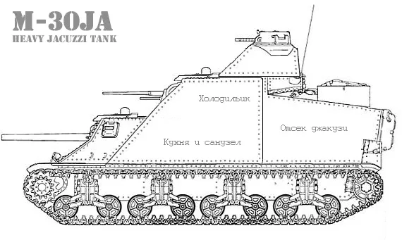 M-30JA. Разработка отдела повышения комфортабельности при Техаском филиале General Motors. Получив массу отзывов о недостаточном удобстве использования более ранних моделей танков, американские специалисты начали проект по доработке старой модели, оснастив её всем необходимым для современного танкового боя снаряжением: отдельным санузлом и холодильным отделением. Командирские версии также оснащались отсеком джакузи для командного состава.