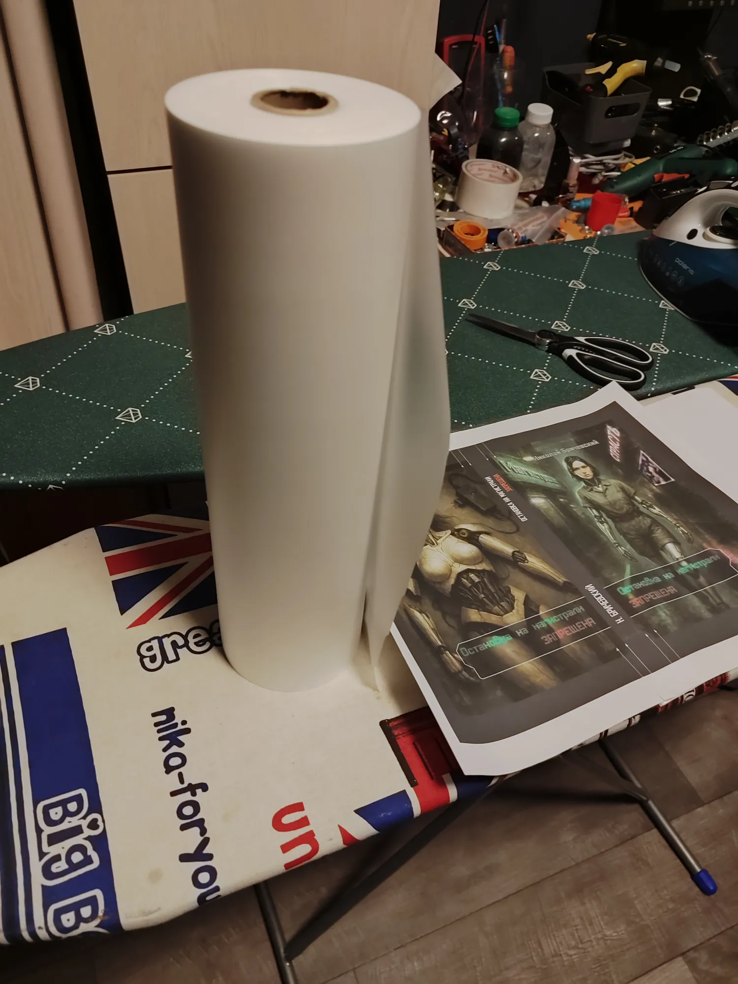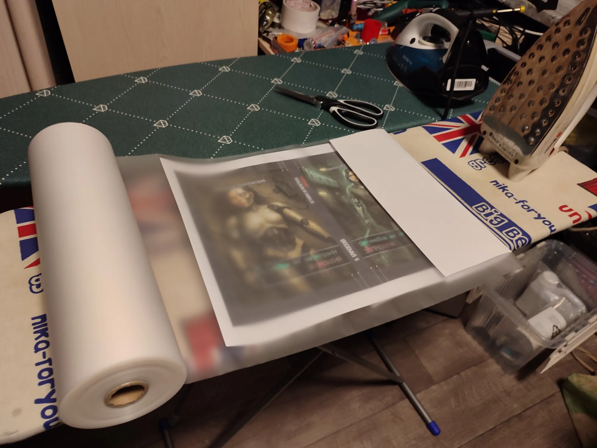 Потом надо склеить два листа вместе и заламинировать. Для ламинации я купил рулон плёнки для какого-то промышленного ламинатора. Такого у меня, конечно же, нет, но есть кусок бумаги, утюг и смекалка.