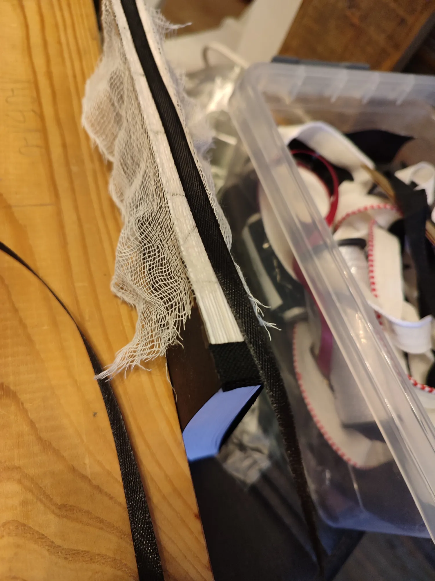 Дальше надо проклеить корешок и приделать слизуру. В качестве оной лучше всего использовать тонкий ситец, но можно плотную марлю или хороший бинт.