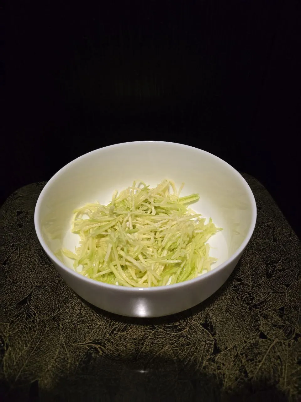 4. Кабачок натереть/нарезать соломкой (я делала на тёрке для морковки по-корейски)