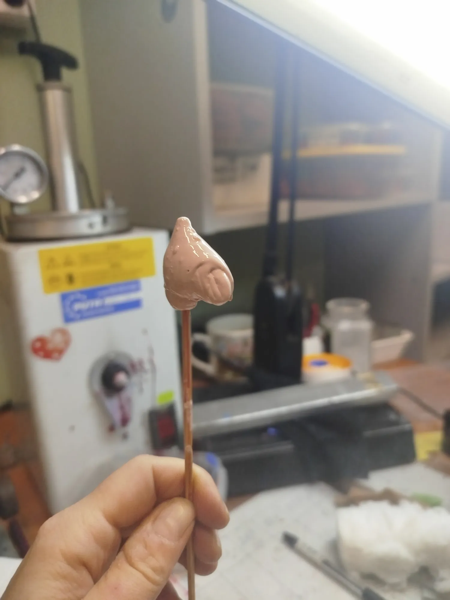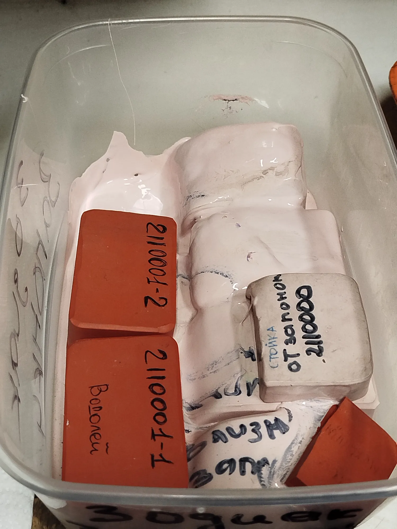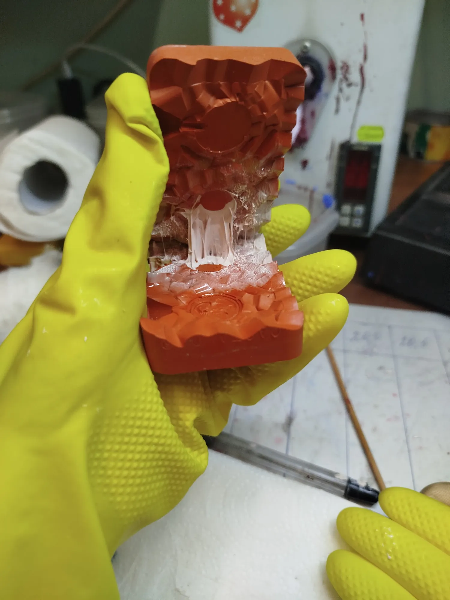 -вам показалось. Это от времени так деформировался розовый силикон (никто же его в молды не использует, да?). Превратился в липкую бесформенную массу и испортил рядом лежащие резинки. Красота какая: