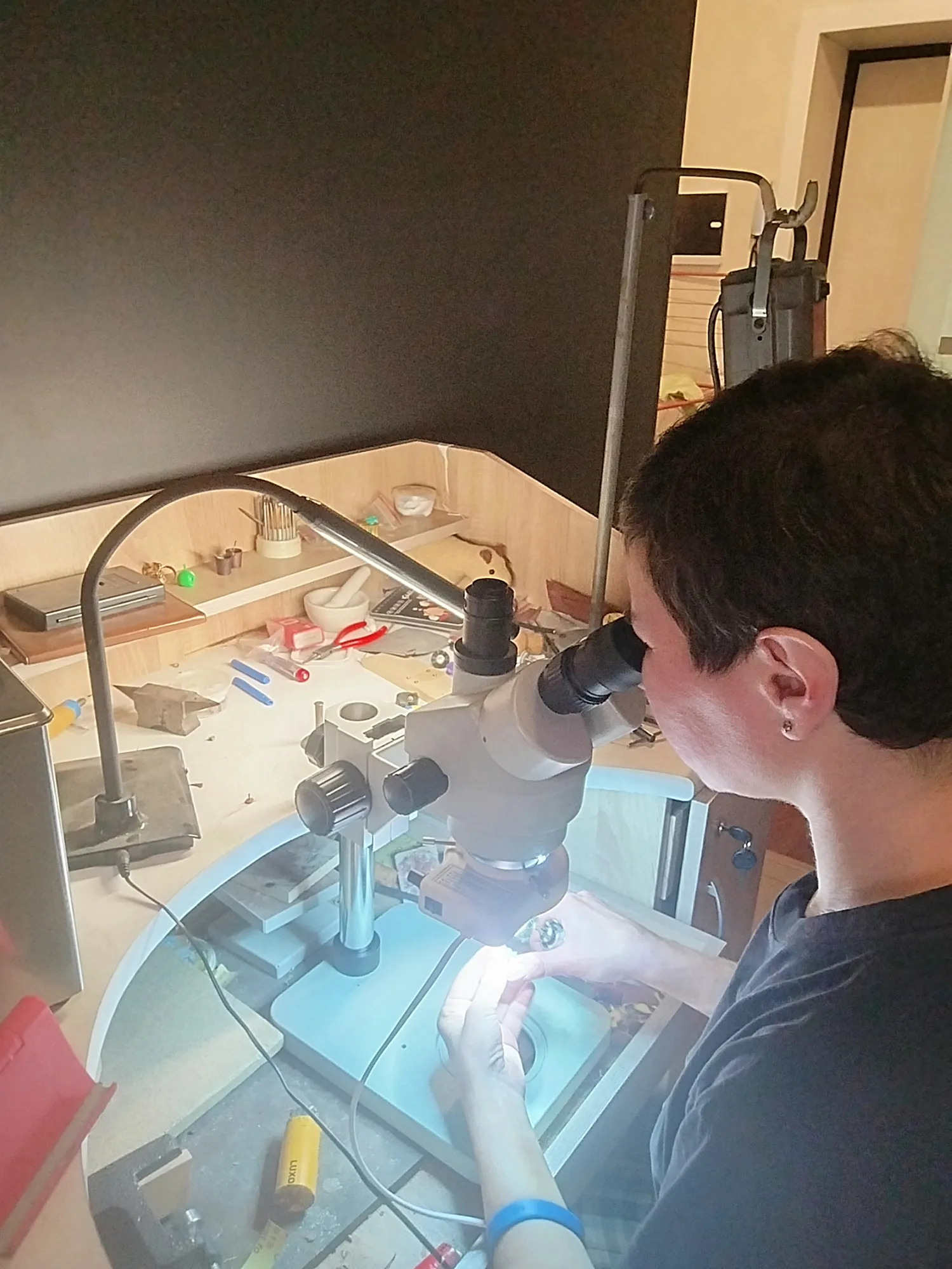 Дальше- грубая полировка на муслине с розовой пастой (у меня обе пасты Люксор) и после помывки- с желтой на пушке. Шлифую/ полирую под микроскопом, пруф: