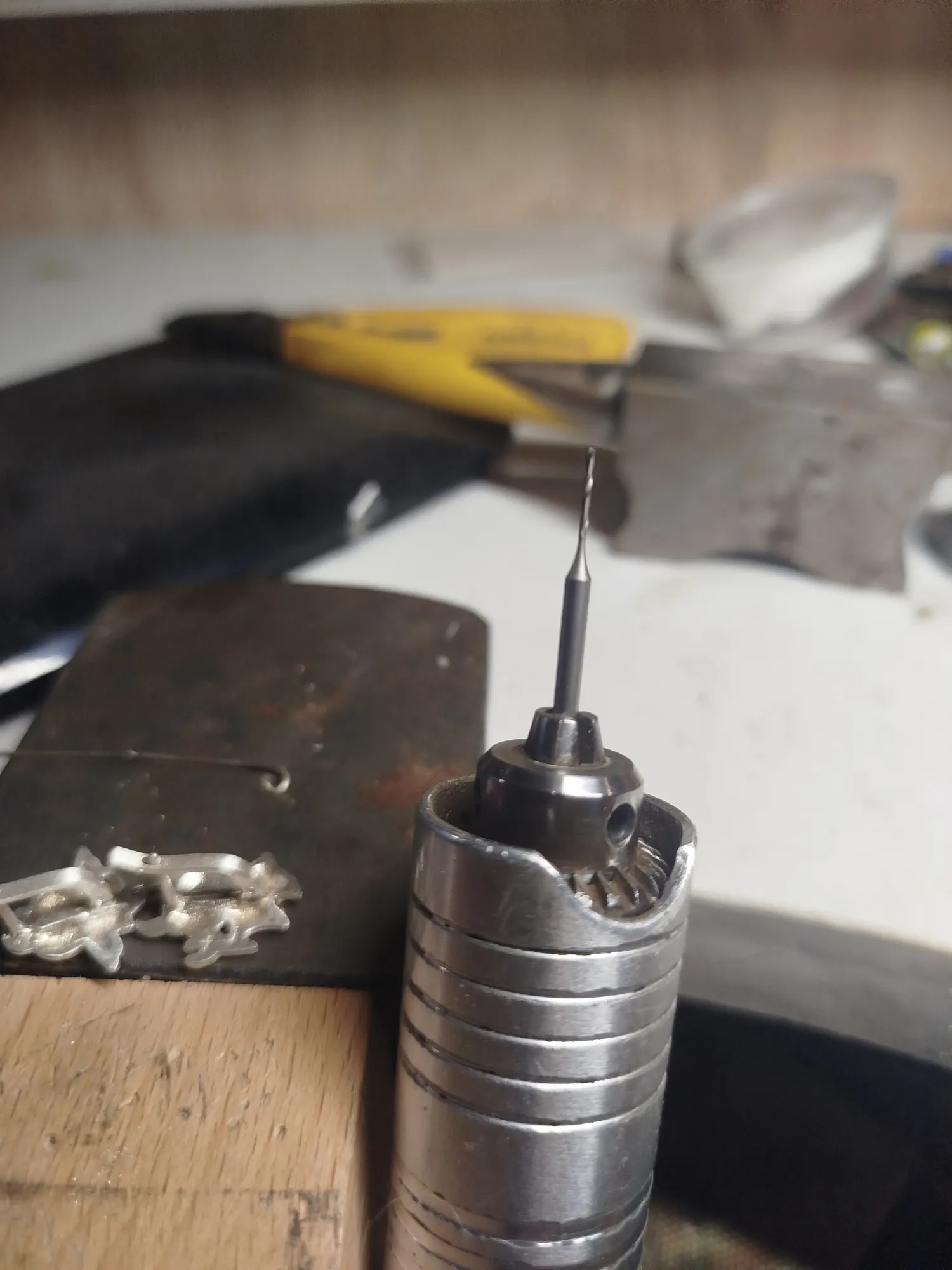 У меня проволока 0,8 мм- поэтому сверлюсь и 0,8 сверлом. Металл тот же, что и в серьгах, так и золотые серьги собирают тоже- штифтовка, припои все того же металла и пробы, что и основное изделие. Исключения- стальные пружины в замках карабинах, шпрингельных, омега и альпа. Сверлить ТОЛЬКО в закрытом состоянии!