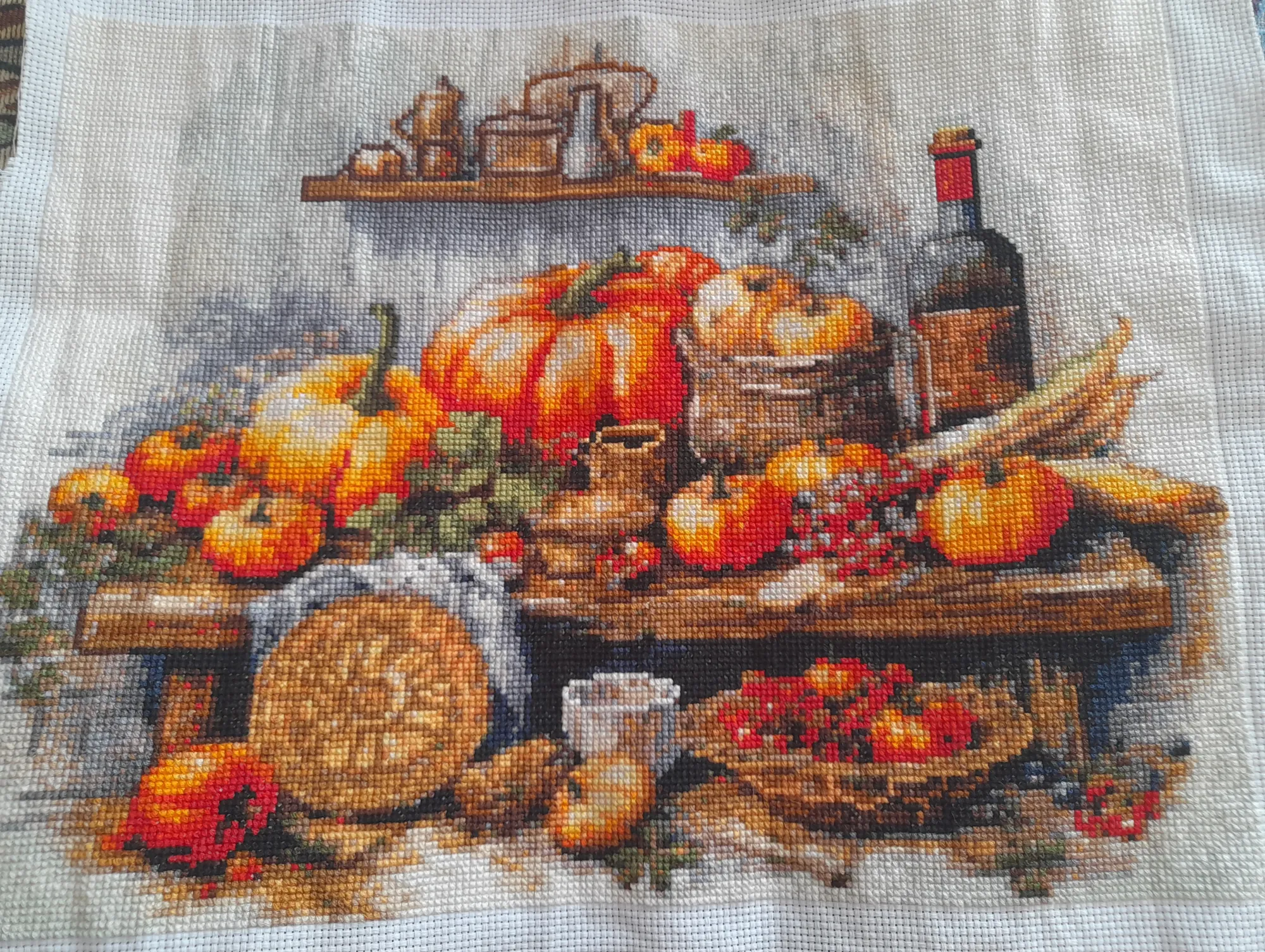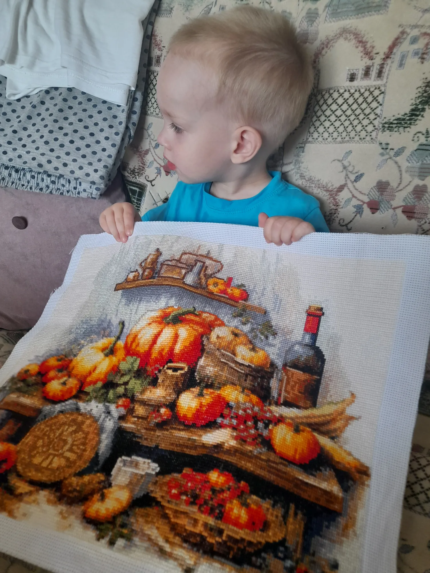 Эту вышивку мне дарила свекровь на день рождения. Поглядев на мои работы-она тоже увлеклась вышивкой и уже много чего навышивала, а ещё она вяжет обалденно, мелковое весь в красоте от бабушки. Короче мировая женщина) мы с ней любим устраивать вечерний клуб рукоделия под бокальчик красного сухого вина. Как-нибудь покажу и её работы. Они прекрасны)