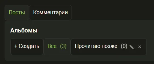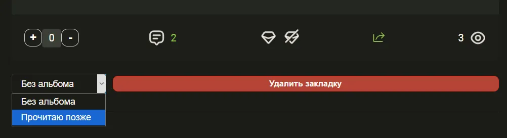 Но это ещё не всё. Все ваши сохранённые материалы можно организовать. В меню «Закладки», которое находится в правой панели сайта, вы сможете создавать папки - мы назвали их «альбомами».