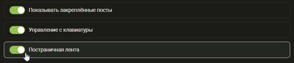 Также внедрена постраничная лента - пагинация. Теперь в личных настройках вы можете включить переключатель на постраничный просмотр.