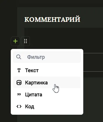 Инструмент доступен через кнопку “+” при создании или редактировании поста.