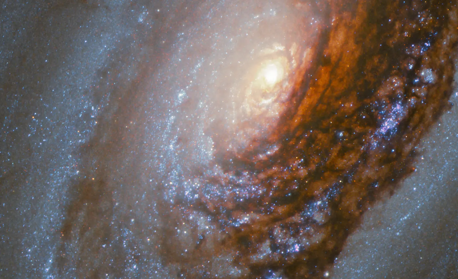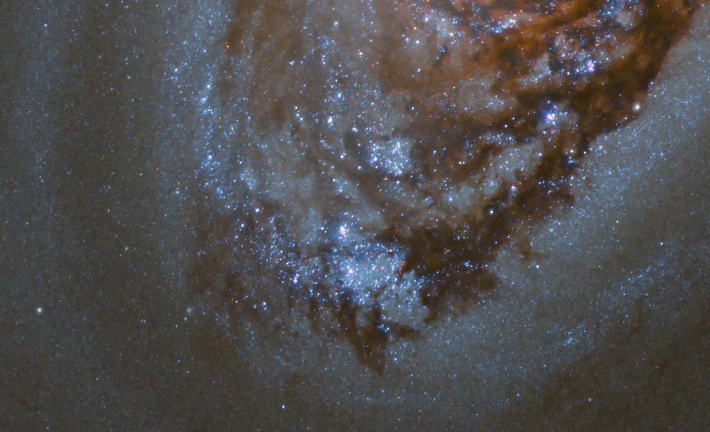 Помимо данных в видимом свете, это составное изображение включает ультрафиолетовое излучение, исходящее от молодых звёзд, и ближнее инфракрасное излучение, позволяющее увидеть структуры, скрытые пылью.